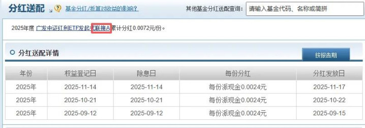 不过这只是场内的ETF基金,小巴看了下它场外的联接基金也有,就是分红远不如场内ETF这只多,今年9月才开始月度分红。